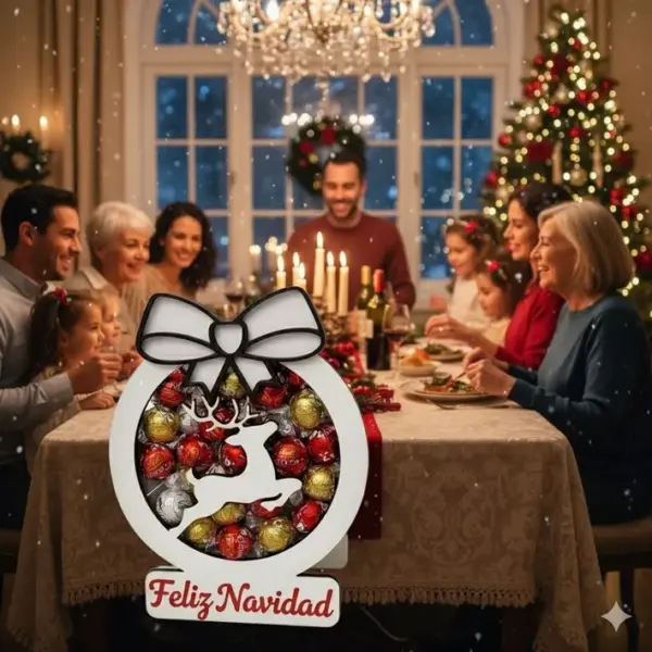 No es solo un recipiente; es una pieza de decoración atemporal y un regalo que deja huella. Elaborada artesanalmente con madera MDF de alta calidad y rematada con elegante metacrilato transparente, su diseño exclusivo irradia espíritu navideño. En el centro, la silueta de un reno tallada añade ese toque emotivo y entrañable que convierte cualquier sobremesa en una celebración.