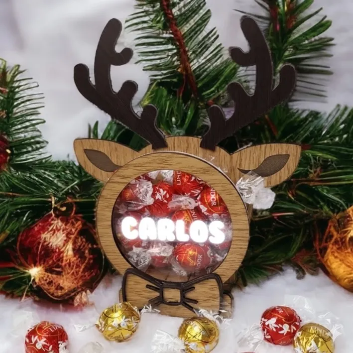 Bombonera Reno Personalizada con Nombre📸 Regalo de Madera con Bombones Lindor