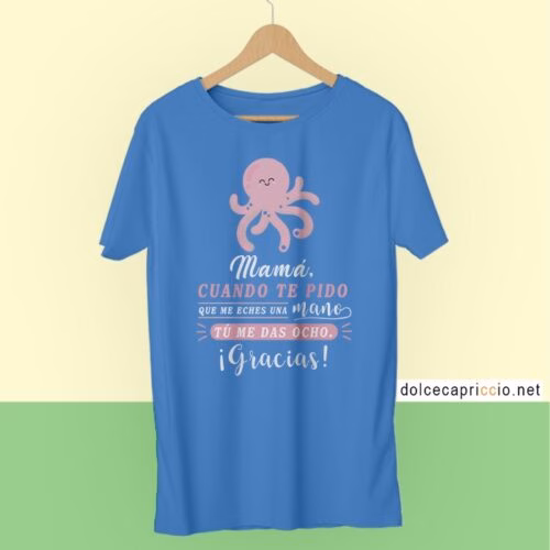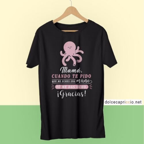 ¿Estas buscando el regalo perfecto para tu mamá? Siempre ha estado a tu lado y dándote todo su apoyo en los momentos más duros. Regálale una camiseta 100% algodón con la frase MAMÁ CUANDO TE PIDO QUE ME ECHES UNA MANO, TÚ ME DAS OCHO.