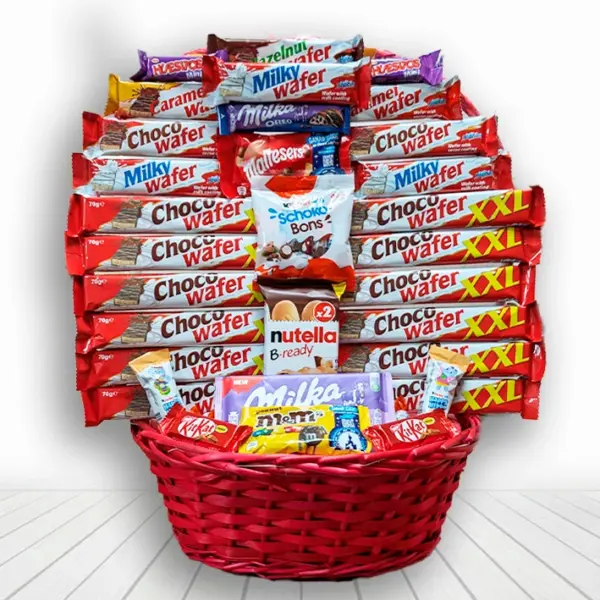 La cesta XXL, es enorme, y además, incluye una variedad de productos deliciosos, como las populares barritas de Kínder, Tableta de Milka, los clásicos de Nutella B-Ready, y otras delicias como KitKat y M&M’s. Cada bocado es una experiencia dulce, perfecta para disfrutar en cualquier momento.