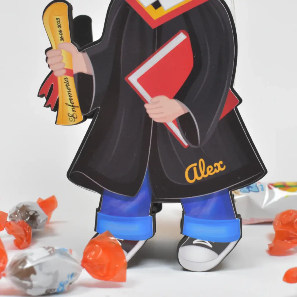 ¡Haz que este momento sea inolvidable con un regalo que fusiona lo práctico, lo dulce y lo personalizado! ¡No esperes más y sorprende al graduado con este regalo original que seguro será apreciado y recordado para siempre.