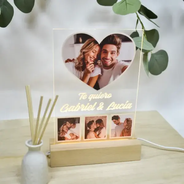 No esperes más para crear el regalo perfecto. Nuestra lámpara personalizada está diseñada para transmitir emociones y convertirse en un detalle inolvidable. Haz tu pedido ahora y convierte tus fotos y recuerdos en un objeto que ilumine el amor entre tú y tu pareja.