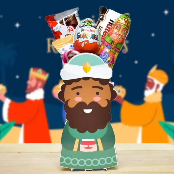 El Portalápices Rey Mago Baltasar con chocolates no solo sorprende por su atractivo, sino también por su contenido delicioso. Cada unidad incluye 300 gramos de chocolates Kinder y Nutella, además de detalles especiales como un Rey Mago de chocolate, un Bastón de caramelo, un Huevo Kinder Sorpresa y un Kinder Bueno. De esta forma, ofrecemos un regalo que combina la tradición de los Reyes Magos con el placer irresistible del chocolate. Sin duda, un regalo que conquistará corazones y paladares exigentes.