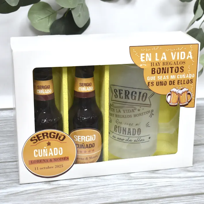 Pack de Cerveza con Jarra Personalizada para Cuñados