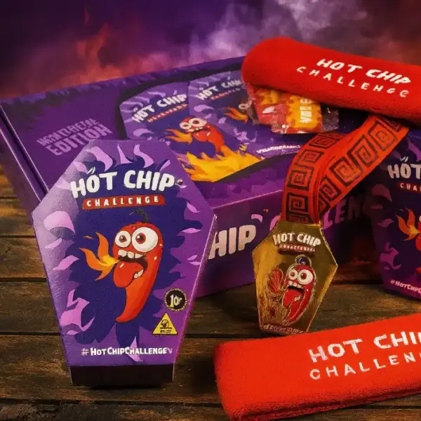 ¿Buscas la chuche viral que está arrasando en TikTok, Instagram y YouTube? Prepárate para el Duel Challenge Box, con Reto de la Patata más Picante del Mundo que se ha convertido en el challenge viral por excelencia. dos patatas ultra picante, presentadas en una caja tipo ataúd, lista para poner a prueba tu resistencia al picante. Esta edición original incluye dos chips individuales listas para desafiar tus límites.