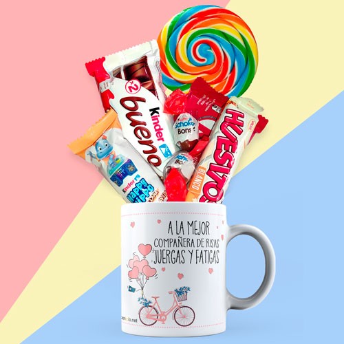 Nuestra Taza cerámica rellena – A la mejor compañera de juergas, risas y fatigas. Es el regalo perfecto que inundará de emoción los ojos de tu compañera, amiga o pareja.